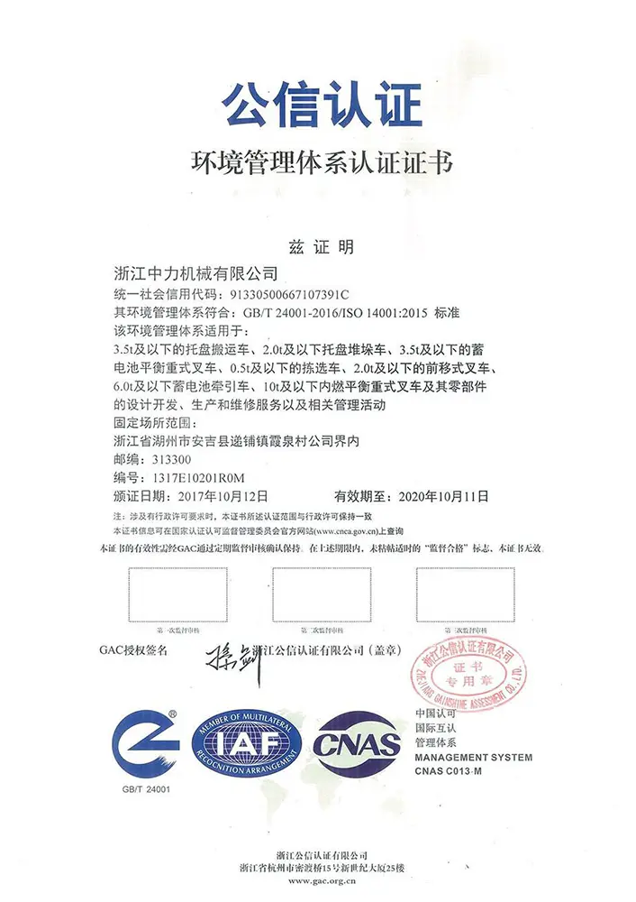 Сертификат EP-Equipment качество вилочных погрузчиков